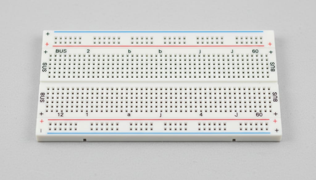 The breadboard is your sandbox for electronics experiments. Understanding its internal connection structure — 5-hole rows in the component area, continuous power rails along the sides — eliminates confusion and makes circuit building intuitive.